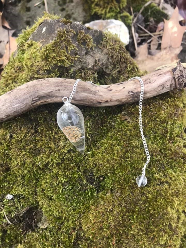 Pendule Cristal de Roche & Fleur de Vie